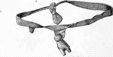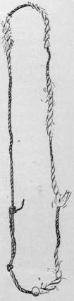 is worn around the neck. It consists of a thong braided together with reindeer-hair,