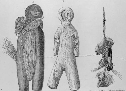 | Fig. 14, a (70/3378), b (70/3243). Special House Guardians. Length, 25 cm., 27 cm | Fig. 15 (70/8047). Divining- Stone. Total length, 28 cm. |