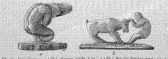 | the workmanship differs from that of most Eskimo engravings in that the figures of human beings and animals are not merely indicated by lines and by contours, but are cut out in- taglio. Moreover, some parts of the figures are frequently made somewhat more prominent than others, after the manner of bas- reliefs, which makes the figure |