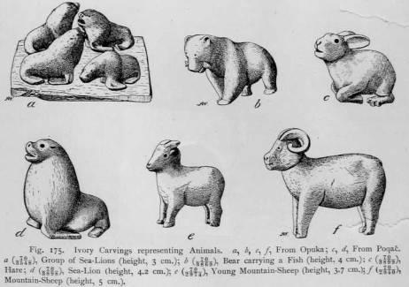 There is no doubt that among the works of art of North America, the Eskimo carvings of animals resemble those of the Koryak most closely. The Eskimo, the Koryak, the Kerek, and the Chukchee are the only primitive tribes among whom miniature sculpture has been so strongly developed.3