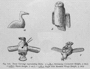 This may probably be explained by the fact that the Koryak practised the art of polishing stone very little. As is well known, but few traces of the working of stone for artistic purposes have been found in palaeolithic stations of Europe. Among the Eskimo carvings in the National Museum at Washing- ton, we find some specimens of animal figures made from soapstone and flint.1
