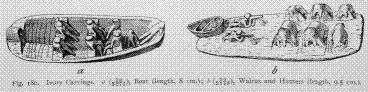 Both specimens reproduced here were collected on the Palpal from Koryak living on the coast of Bering Sea: a was made on the Opuka River; b, on the Poqa'c River. In a is represented a scene from the life of fisher-