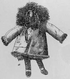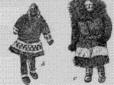 While the carvings and engravings are the art of man, the ornamenta-tion of clothing and rugs is the result of the artistic efforts of woman. The simplest dress-decoration consists1 in the binding of skin dresses with fur, or in the trimming of fur clothing with fur of a better kind than that of the clothing, or of a different color, and in the use of white, black, and red dyed skin, either with the hair removed or placed flesh side outward, the hair which is on the inside of the coat being shorn.