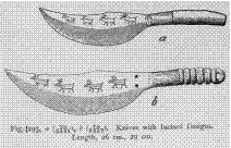 Fig. 193. Knives with Incised Designs. Length, 26 cm., 29 cm. |