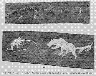 Fig. 194. a,b Cutting-Boards with Incised Designs. Length, 40 cm., 60 cm.