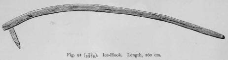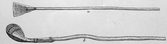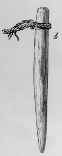 In Fig. 77 a, is illustrated such a shovel made of deer-antler, and fastened to a stick by means of thongs. The length of the handle enables