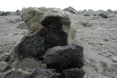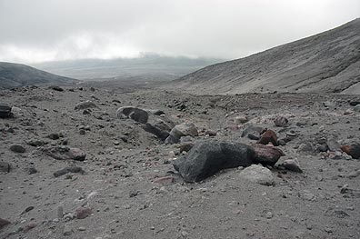 | Фото 2. Обвально-пирокластические отложения извержения вулкана Безымянного 2006 г. |