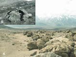 Фото 6. Бомба типа «хлебной корки» на высоте около 2000 м над уровнем моря на южном склоне вулкана. |
