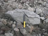 Фото 2. Отложения пеплово-глыбового пирокластического потока извержения вулкана Безымянный 11 января 2005 г.(А); глыба лавы, взорванная содержавшимся в ней газом (Б). |