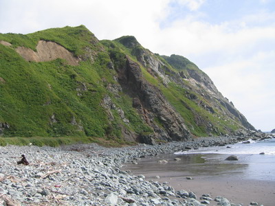 ![]() Рис. 9. Мыс Камчатский – развалы пород офиолитовой ассоциации на пляже |