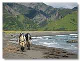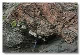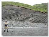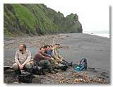 Количественные характеристики проведенных исследований: - отобрано 30 проб вулканических пород различного возраста для определения их минералогических и геохимических характеристик; - проведено детальное описание двух фрагментов осадочных палеоокеанических разрезов, содержащих углистые прослои, отобрано 40 проб кремнистых и карбонатных пород для определения возраста по радиоляриевым комплексам. В сентябре 2007 г. Петрологический отряд ИВиС ДВО РАН проводил полевые работы на п-ове Кроноцком по рр. Тюшевка, Волчья и на побережье Кроноцкого залива от пос. Кроноки до мыса Ольга. На этом участке отряд состоял из 4 человек: ст.н.с. Д.П. Савельев, н.с. О.Л. Савельева, студенты О.В. Кувикас и И.Н. Василюк. Заброска и возвращение отряда осуществлялись вертолетом, переброска между участками – пешком. Основная задача, которую решал отряд на данном участке – опробование миоценовых вулканитов Тюшевского прогиба для выяснения условий их формирования и геодинамической принадлежности. Результаты полевых работ: - опробованы базальты безымяннореченской толщи (поздний миоцен) вблизи устья р. Волчьей (рис.12) – 4 пробы; - отобраны образцы щелочных калиевых базальтов неогенового возраста из керна Конусной скважины в верховьях р. Волчьей (рис.13) – 12 проб; - собрана обширная коллекция фауны из ракитинской свиты (поздний миоцен) – более 100 образцов (для уточнения возраста и для учебных коллекций КамГУ им. Витуса Беринга); - опробованы палеогеновые базальты кроноцкой серии (козловской свиты) на побережье бухты Ольги (рис.14-17), в том числе отобраны стекловатые корки с поверхности потоков для изучения геохимии расплавных включений. Финансирование работ осуществлялось за счет грантов ДВО РАН № 07- III-Д-08-092 (руководитель Г.П. Авдейко) и № 07-III-А-08-333 (руководитель Д.П. Савельев), гранта РФФИ № 07-05-00080 (руководитель Д.П. Савельев) и бюджетных средств ИВиС ДВО РАН. |