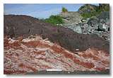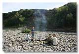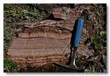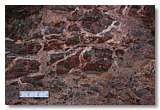 Работы проводились по всему южному побережью п-ова Камчатский Мыс до мыса Африка и по рекам Мутная, Каменная, Камчатская. Наиболее значимыми результатами проведенных работ является вторая находка углистых пород среди океанических кремней (рис.10), а также опробование различных типов меловых базальтов на всех участках. Кроме этого, опробованы офикальциты (рис.11), впервые найденные в прошлом полевом сезоне в аллювии ручьев, размывающих тектонические зоны.