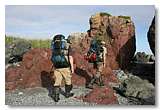 На п-ове Камчатский Мыс было продолжено изучение пород офиолитовой ассоциации мелового возраста, включающей гипербазиты, габбро, долериты, базальты и глубоководные кремнисто-карбонатные отложения. Данный полевой сезон был посвящен преимущественно изучению и опробованию вулканических и осадочных палеоокеанических толщ с целью их биостратиграфического датирования, определения геохимических характеристик, взаимоотношений с нижними частями офиолитового разреза и условий образования (рис. 7-9).