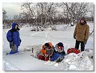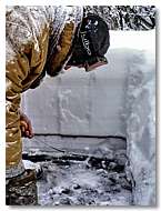 С 25 января по 5 февраля и с 14 по 18 марта 2007 г. проводились полевые экспедиционные исследования, связанные с изучением последствий извержения вулканов в 2006 г.: Шивелуч (5 декабря) и Безымянный (24 декабря). Для определения объема и изучения изверженного пирокластического материала проводилось шурфование снежной толщи на направлениях возможного распространения пепловых шлейфов от вулканов Шивелуч и Безымянный. Было опробовано более 60 точек в направлении: на запад, юг, север от вулкана Шивелуч, а также на северном, восточном, северо-восточном и западном направлениях от вулкана Безымянный. Стратиграфическое изучение полученных разрезов снежной толщи позволит реконструировать ход извержений и датировать пепловые выбросы. В результате работ отобрано: 94 пробы снега с пеплом (в том числе 6 – валовые, 88 – площадные; из них 25 образцов пепла влк. Безымянный, 48 – предположительно влк. Шивелуч, 15 – не идентифицировано). При поддержке командира военного городка п. Ключи 3 февраля был выполнен облет вулкана Шивелуч. Получены фотоснимки состояния купола вулкана и термальной площадки в районе экструзивного купола Каран. |