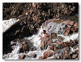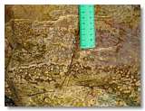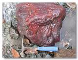 В аллювии ручьев наблюдались крупные (до 1 м) валуны яшм различного цвета, с разнообразными текстурными рисунками (рис. 4-7). Породы могут использоваться в качестве поделочного камня.