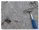В туфогравелитах беринговского комплекса найдены окаменелые зубы акул. Взяты штуфы известняков с окаменелой фауной (шестилучевыми кораллами) (рис. 8). В базальтах и базальтовых туфах на северном окончании о. Медного наблюдались выделения самородной меди (рис. 9).
