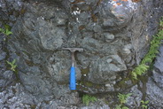 - опробованы интрузивные породы и дайки, прорывающие отложения кроноцкой серии (рис. 4, 5). Результаты полевых наблюдений позволяют предположить, что дайки, отнесенные предшественниками к неогеновому комплексу (N1), не связаны с отдельным этапом магматической деятельности, а принадлежат к единому комплексу с палеогеновыми интрузиями и вместе с ними являются интрузивными и субвулканическими фациями кроноцкой палеодуги. Если такая интерпретация верна, то снимается проблема происхождения неогенового вулканизма п-ова Шипунского. Проверить полученные выводы позволят определения абсолютного возраста пород;