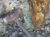 Был выполнен маршрут в р-не г. Петропавловска-Камчатского на бухту Раковую. В зоне серпентинитового меланжа были отобраны образцы с обильным прожилкованием вторичными медными минералами – хризаколлой, азуритом, малахитом (рис. 15-16). Образцы переданы в научный музей ИВиС ДВО РАН.