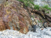 - опробованы рудные тела по берегу бухты Бечевинская и на мысе Рудном (бухта Моржовая) (рис. 6-9). Полученные материалы лягут в основу дипломных работ студентов КамГУ им. Витуса Беринга, принимавших участие в работах отряда;