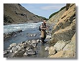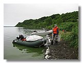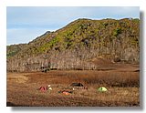 В июле-августе 2011 г. Петрологическим отрядом ИВиС ДВО РАН проведены полевые работы на п-ове Камчатский Мыс – в северной части – на побережье Озерного залива и в южной части – на массиве г. Солдатской (рис. 1). В северной части п-ова Камчатский Мыс основной задачей было комплексное опробование фрагментов разреза столбовской серии (рис. 2). В южной части – опробование осадочных образований разного возраста, сформированных при размыве гипербазитов Солдатского массива (рис. 3). Заброска до оз. Нерпичьего осуществлялась на транспорте ИВиС ДВО РАН, далее – на моторной лодке (рис. 4), пешком и на попутном транспорте. В сентябре (6-9 сентября) были проведены маршруты по рр. Мутнушка и Мутная (рис. 8) с целью поиска ксенолитов фундамента в валунах и глыбах авачитов. Подход на р. Мутную был осуществлен со стороны Козельского вулкана. Было найдено несколько валунов авачитов, но ксенолитов в них найти не получилось. 5-11 октября были проведены работы в Леховых горах (междуречье рр. Вахиль – Лев. Островная) (рис. 9). Цель работ – комплексное опробование и изучение структурных особенностей известняков ветловского комплекса (рис. 10-14). Одна из решаемых проблем – уточнение возраста ветловского комплекса, поскольку по данным предшественников (Литвинов и др., 1991) были получены как меловые, так и палеоцен-эоценовые датировки. Взяты также пробы базальтов для сравнения с блоками ветловских базальтов в устье р. Островной (работы 2010 г.) и в хр. Кумроч. Заброска осуществлялась вахтовкой ИВиС ДВО РАН и пешком (рис. 15, 16) до ручья Базылева (рис. 17). Полевые работы проводились по двум темам: в рамках гранта РФФИ № 10-05-00065 «Анализ влияния вулканических и астрономических событий на палеоклимат в альб-сеноманское время на основе изучения меловых палеоокеанических отложений Восточной Камчатки», а также гранта ДВО РАН № 09-III-А-08-428 «Проблема миграции плиоцен-четвертичного вулканизма Восточной Камчатки». |