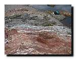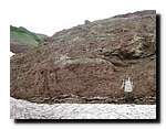 - в р-не мыса Камчатского найдены и опробованы фрагменты разрезов карбонатно-кремнистого переслаивания с углеродистыми прослоями (рис. 5). Взяты дополнительные пробы углеродистых пород и пиритовых включений в них из ранее изученных разрезов на лев. притоке р. Каменной и руч. Лугового (рис. 6, 7). Основной вывод изучения данной ассоциации: везде, где в поле развития смагинской свиты наблюдались ненарушенные фрагменты карбонатно-кремнистого переслаивания более 7-10 м мощности, в разрезе присутствует по крайней мере один прослой углеродистых пород, отвечающий аноксическому событию. По-видимому, на всей площади развития смагинской ассоциации мы наблюдаем в виде тектонических блоков и олистолитов фрагменты одного и того же палеоокеанического разреза (переслаивание яшм и известняков) мощностью не более 15-20 метров;