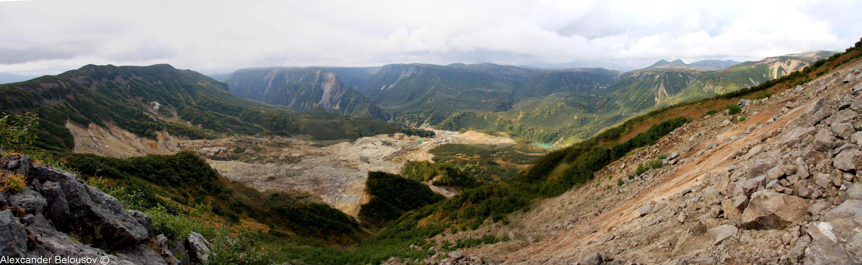 Geyser Pervenetz (the Firstborn) covered by thick layer of mudflow deposit. |