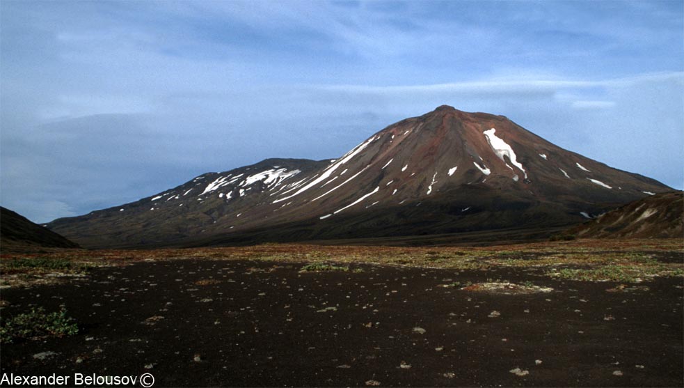 Kronotsky (left) and Krasheninnikov (right) volcanoes.