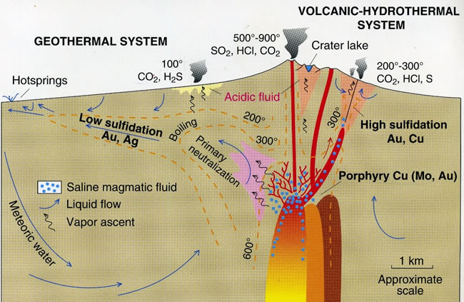 Основной особенностью нашего направления исследований является разработка фундаментальной научной концепции о возможности формирования геотермальных, эпитермальных рудных и золото-медно-молибден…-порфировых месторождений в единых геологических структурах. Эти структуры мы называем длительноживущими (до десятков и сотен миллионов лет) сквозькоровыми гидротермально-магматическими конвективными системами. Они образуются в зонах перехода океан-континент, на границах древних платформ, участках тектоно-магматической активизации и во-многом определяют эволюцию земной коры, контролируют потоки флюидов и генерируют энергию и вещество.