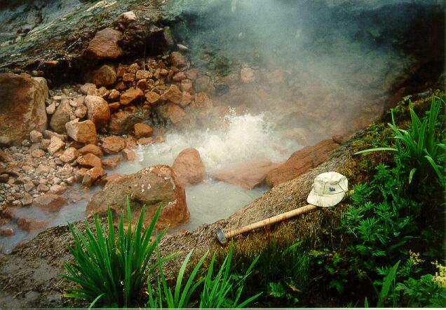 Кипящие котлы источников Академии наук на южном берегу Карымского озера.