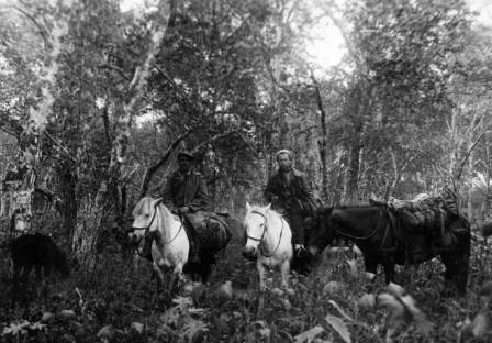 Тронулись в путь. Скоро начался березовый лес. В большом количестве попадаются обширные лапиллиевые площади. Начались сухие пади. Ну и глубокие и крутосклонные они. В одной из падей оказался ручей. Напоили лошадей и начали подниматься по крутому склону вверх. Вдруг услышали крик и увидели что-то белое, катящееся по склону. То была белая кобыла с самым ценным грузом. Вел ее Шурка. Он бежал вниз и хотел задержать ее. Я, побледнев от бешенства, побежал к месту происшествия. Лошадь лежала, а Шурка снимал вьюки. Я думал, что лошадь мертва, но оказалось, что она смогла подняться на ноги. Значит, хорошо отделалась. Я посмотрел содержимое ящиков. К величайшему нашему счастью, в обоих ящиках все, кроме одной пробы грязи и разбитой банки, сохранилось. Недалеко от этого места мы остановились на ночь.