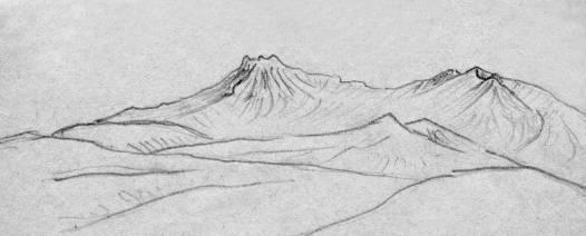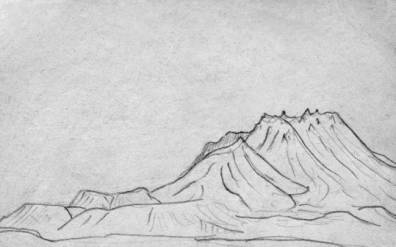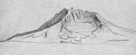 Интересна долина реки Семячик. Дол обрывается к ней U-образным склоном, а с левого берега таким же U-образным склоном подходит подножье Семячинского хребта. Сама река врезается каньоном в эту трогообразную долину. Что это? Был ли это ледник или просто приподнятый край дола образовал такой профиль? По пути делал массу рисунков.