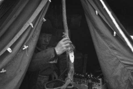 Встали мы рано, но было так холодно, что делать ничего не хотелось. Столпились около костра и грелись. Стали собираться: Кутейников, Шура и проводник Семен Прокопьвич – в город, а мы с Ваней - на ключи.