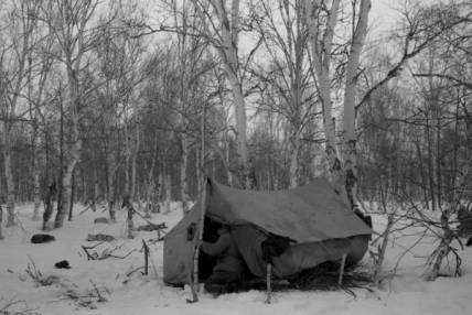 Ночевка в зимнем лесу. Фотография 1953 года. |