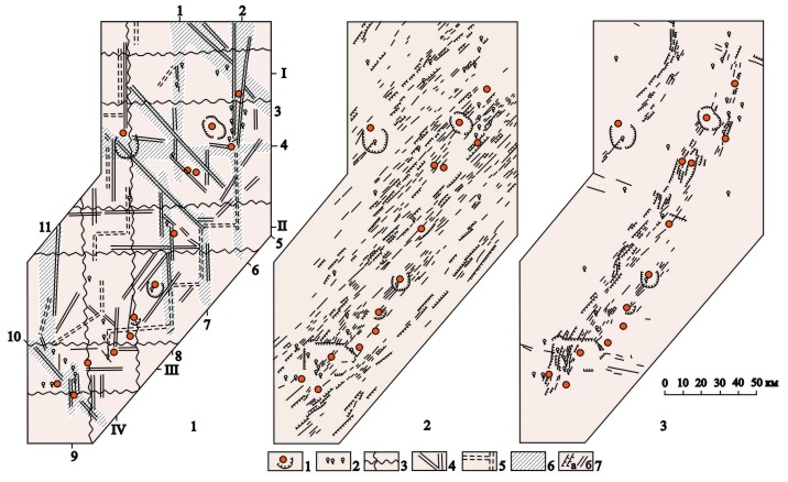 с другой - разломы северо-восточного