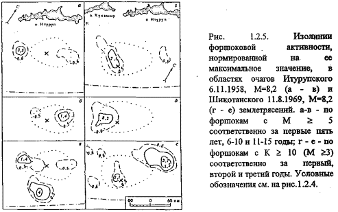 Ниже приведены результаты исследования эпицентральных областей курило-камчатских землетрясений (Викулин, 1982, 1984 б, 1987, 1988; Викулин, Викулина, 1991).