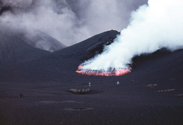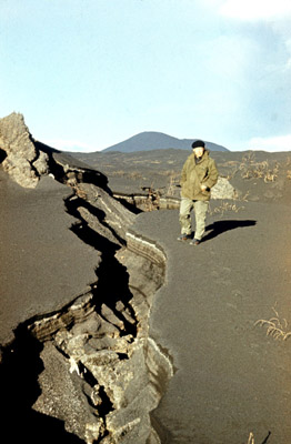 Как мы уже говорили, Большое трещинное Толбачинское извержение стало одним из трех наиболее изученных крупных извержений. Оно дало возможность исследовать ряд особенностей и черт, присущих базальтовому вулканизму. Впервые удалось много узнать о механизме сложного большого извержения. Эти сведения помогут более детально изучить природу вулканических явлений. Извержения, подобные Толбачинскому, бывают не каждое столетие. Фактические данные, накопленные в ходе обширных наблюдений Большого трещинного Толбачинского извержения, послужат поколениям. В заключение автор вновь выражает благодарность и признательность участникам Толбачинской экспедиции. * Напечатано в международном ежегоднике“Наука и человечество”: Федотов С.А. Большое трещинное извержение Толбачика // Наука и человечество. 1984. М.: Знание, 1984. С. 94-117.Международный ежегодник “Наука и человечество”, который выпускался на нескольких языках Всесоюзным обществом “Знание” и АН СССР, знакомил с последними достижениями советской и зарубежной науки. Его девизом было: “Доступно и точно о главном в мировой науке”. Тематика охватывала проблемы: человек, Земля, микромир, Вселенная, технический прогресс, летопись науки. Благодаря высокой оценке, данной АН СССР исследованиям на Толбачике, предоставилась возможность опубликовать в ежегоднике данную статью. В ней излагались основные сведения о механизме и развитии Большого трещинного Толбачинского извержения. Статья дополняет фундаментальную монографию “Большое трещинное Толбачинское извержение, Камчатка, 1975-1976 гг.”. М.: Наука, 1984. Все 36 цветных фотоснимков, помещенных в статье, сделаны С.А. Федотовым. В данном издании часть фотоснимков была заменена на равноценные лучшей сохранности. (Прим. автора). |