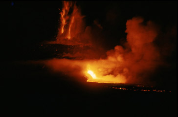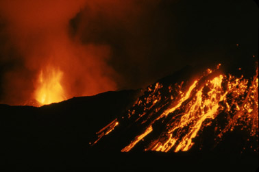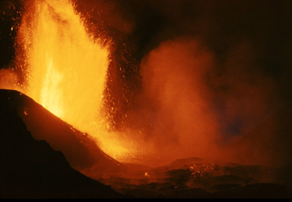 Вулканизм - одно из главных явлений в геологической жизни планет земной группы. Это наглядно показали космические исследования последних двух десятилетий. Бурная вулканическая деятельность протекала на Луне в ранние стадии ее развития. Самые большие вулканы из известных до сих пор человечеству находятся на Марсе. В поперечнике они достигают 700 км. Вулканы есть на Меркурии и Венере. Они неистово извергаются на Ио - спутнике Юпитера. Основная причина вулканической деятельности - дифференциация, разделение вещества в недрах планет в ходе их развития. Более легкое вещество поднимается вверх, и когда его раскаленные массы приближаются к поверхности планеты, происходят вулканические извержения. Продолжительность и масштабы такой деятельности огромны. Например, на Земле она началась на самых ранних стадиях существования планеты и продолжается до сих пор. Имеются веские доводы в пользу того, что кора, водная оболочка и атмосфера Земли образовались в течение миллиардов лет преимущественно из продуктов вулканической деятельности. В наше время из недр планеты на ее поверхность ежегодно поступает 5 - 15 км3 магмы, чье твердое вещество слагает новые горные породы и чьи газы пополняют атмосферу. Около четырех пятых магмы изливается на дне океанов в рифтах - расщелинах срединных океанических хребтов. Согласно представлениям тектоники плит базальтовая магма наращивает, “наваривает” здесь края раздвигающихся литосферных плит. Итак, вулканизм - один из главных процессов, сформировавших нашу среду обитания. В ходе вулканической и последующей поствулканической деятельности возникли многие месторождения полезных ископаемых, в первую очередь рудных. Запасы многих металлов истощаются, и познание закономерностей образования их залежей становится все более и более необходимым. Вулканическое тепло Земли — один из важнейших потенциальных источников столь нужной человечеству энергии. Сильные извержения вулканов в населенных местностях - страшное бедствие. Так, гигантский взрыв вулкана Санторин в Эгейском море, произошедший примерно за 1500 лет до н. э. и вызвавший огромные разрушения (было выброшено 25 км3 пемз и пепла), вероятно, стал причиной упадка Минойской цивилизации. Более слабый взрыв вулкана Кракатау унес десятки тысяч жизней в Индонезии в 1883 г. Нам необходимо научиться предсказывать извержения и по возможности уменьшать ущерб от них. Пожалуй, сказанное поясняет значение вулканизма и роль вулканологии. Современная вулканология изучает вулканизм Земли и планет, природу и механизм вулканической деятельности, разнообразные явления, сопровождающие ее, геологию вулканических областей и широкий круг научно-прикладных задач, некоторые из которых были упомянуты выше. Большие трещинные извержения С самого зарождения вулканологии стимулом ее развития служили большие вулканические извержения. Так было во времена извержения Везувия и гибели Помпеи в 79 г. н. э., точное описание которого оставил Плиний Младший, так есть и сегодня, в эпоху колоссального роста науки. При крупных извержениях образуется львиная доля всех вулканических продуктов - лав, шлаков, пеплов и газов. К наиболее важным, показательным и информативным с научной точки зрения относятся большие трещинные извержения. Во время таких извержений в земной коре образуются пр