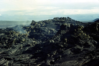 Лавовые потоки широко растекались от конуса Южного прорыва по пологой местности. Они покрыли 36 км 2. Здесь наблюдалось все многообразие базальтовых лавовых потоков - от стекловатых канатных возле конуса до глыбовых на краях лавового покрова (рис. 30, 31).