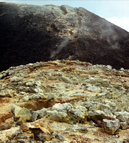 Сразу после остановки извержения возобновились землетрясения. В течение 20 дней они перемещались вдоль линии Толбачинского извержения то на юг (на 15-20 км), то в обратном направлении, но магма так и не смогла снова пробиться на поверхность. Последующие исследования механизма внедрения даек и трещинных извержений показали, что появление жидких базальтов и длительное сравнительно вялое течение извержения в Южном прорыве были закономерными. Если магматический очаг перед извержением находился под определенным избыточным давлением, а сопротивление выводного канала течению магмы остается постоянным в ходе извержения, то расход магмы со временем довольно быстро убывает по экспоненциальному закону. Однако давление магмы и скорость ее течения по каналу падают пропорционально ее расходу. В свою очередь, толщина питающей дайки пропорциональна давлению, а расход магмы в дайке очень сильно зависит от ее толщины. В итоге, если считать вязкость магмы неизменной, то расход последней оказывается пропорциональным четвертой степени давления. В этом случае небольшое его снижение в очаге и соответствующее уменьшение толщины питающей дайки должны быстро останавливать извержение. Длительная “разгрузка” магматического очага по экспоненциальному закону возможна при двух условиях: во-первых, если начальная питающая дайка в ходе извержения заменяется округлым каналом (диаметр канала уже практически не зависит от давления) и, во-вторых, если вязкость магмы уменьшается по ходу извержения хотя бы пропорционально кубу давления. Уменьшение вязкости магмы в Южном прорыве по сравнению с Северным и замена питающей трещины жерлом (и, вероятно, круглым каналом на глубине) позволили Толбачинскому извержению длиться 524 дня. Расчеты показывают, что главной причиной остановки извержения было падение избыточного давления в магматическом очаге, а не застывание канала, по которому поступала магма. В ходе извержения давление снизилось со 100-250 до 10 атм или до еще меньшего значения. Если бы Большое трещинное Толбачинское извержение продлилось еще около 200 дней, то теоретически расход магмы в его канале мог бы снизиться до 0,2-0,3 м 3/с и стал бы равен ее притоку из мантии в промежуточный очаг на глубине 25-40 км. В этом случае, на месте Южного прорыва стал бы постепенно расти новый постоянно действующий базальтовый щитовой вулкан. Этого не случилось. Тем не менее, размах и геологические последствия извержения были огромными.Активная область Большого трещинного Толбачинского извержения протянулась на 28 км от Плоского Толбачика до конуса Южного прорыва. Вдоль нее выросла цепь крупных шлаковых конусов — Новые Толбачинские вулканы. Вокруг Южного прорыва образовался базальтовый лавовый покров. Лавы залили площадь около 45 км 2. Общий объем изверженных лав, шлаков и пепла достиг 2,3 км3. В атмосферу было выброшено около 108 т вулканических газов.После окончания последнего роя землетрясений в районе извержения началась поствулканическая деятельность. На крупных конусах интенсивно образуются возгоны - различные минералы, вынесенные в газообразном состоянии из трещин или лавового потока, либо возникшие в результате взаимодействия вулканических газов между собой или со шлаками (рис. 33). Идет оседание конуса и опускание местности вокруг них. Эти процессы будут продол