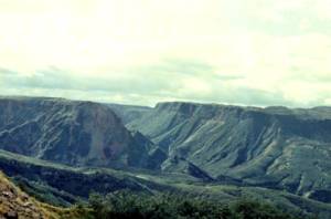 узким глубоким извилистым ущельем