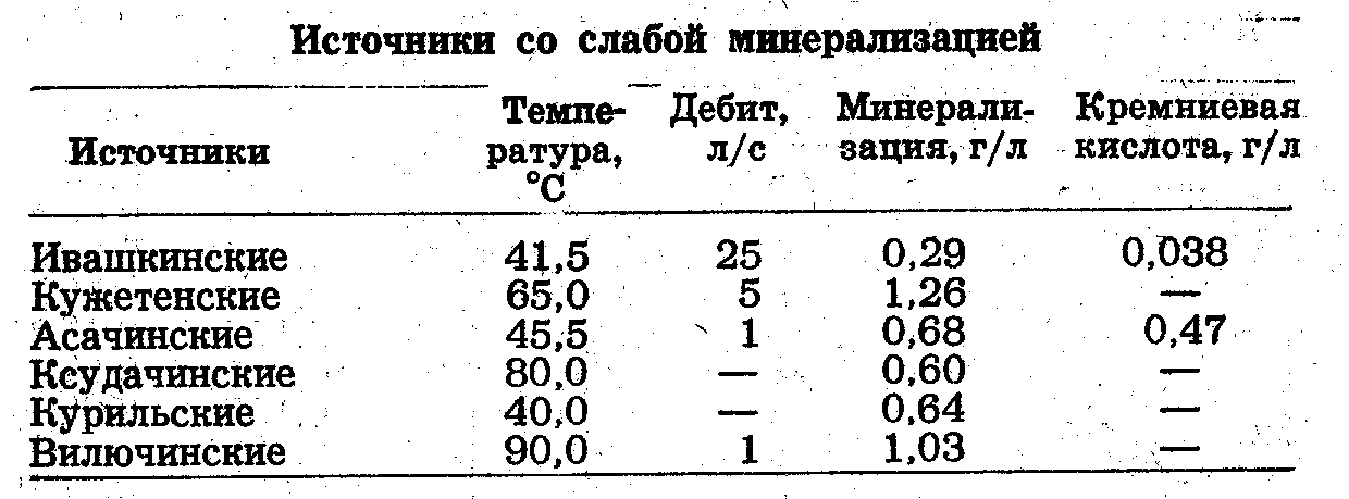 Аагские нарзаны; Дачные; Северо-Мутновские;