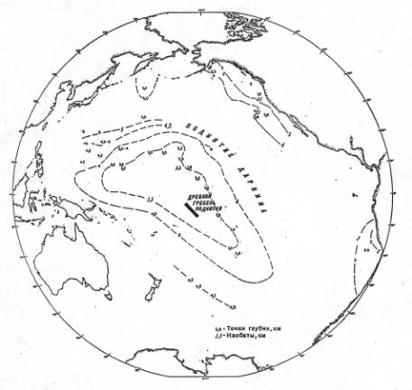 Рис.2. Реконструкция Поднятия Дарвина в Тихом океане (по Менарду, 1966).