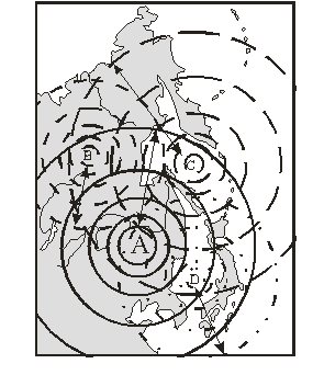 Отметим также подобие расчетных периодов Японской системы при различных значениях m c периодами, измеренными деформографами (Давыдов, Долгих, 1997). Аналогичная картина наблюдается для периодических изменений ледовитости Охотской системы и типов атмосферной циркуляции, приводимых в (Полякова, 1997). Это свидетельствует о справедливости предположения периодического изменения скорости U и рода ГДП в процессе развития данных систем.