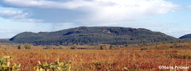 Shisheika lava dome seen from the west. The eruption occurred ~4.2 ka BP. It started as a minor explosive eruption, tephra of which was dispersed at a distance of ~20 km from the source. The flanks of the whole edifice are host rocks uplifted due to lava intrusion.