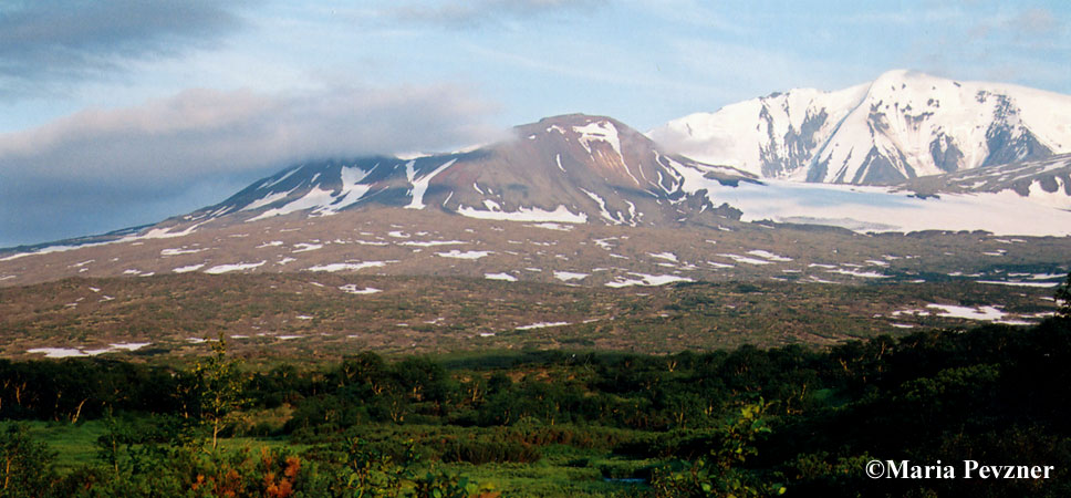 Nylgimelkin cinder cones and lava field formed around 5.5 ka BP at the northwestern foot of the old Khuvkhoitun volcano (at the background right). Nylgimelkin eruptive center was mentioned by Ogorodov et al. (1972) as Atlasov volcano; the largest cone, however, is named Nylgimelkin on the modern maps.