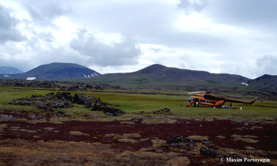Central part of the Sedanka lava field. Early Holocene lava flows from monogenetic vents are seen in the foreground and to the left in the background.