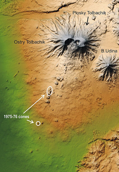 cones: Ostry ("Sharp") Tolbachik and Plosky ("Flat") Tolbachik.